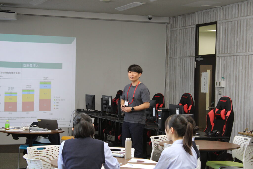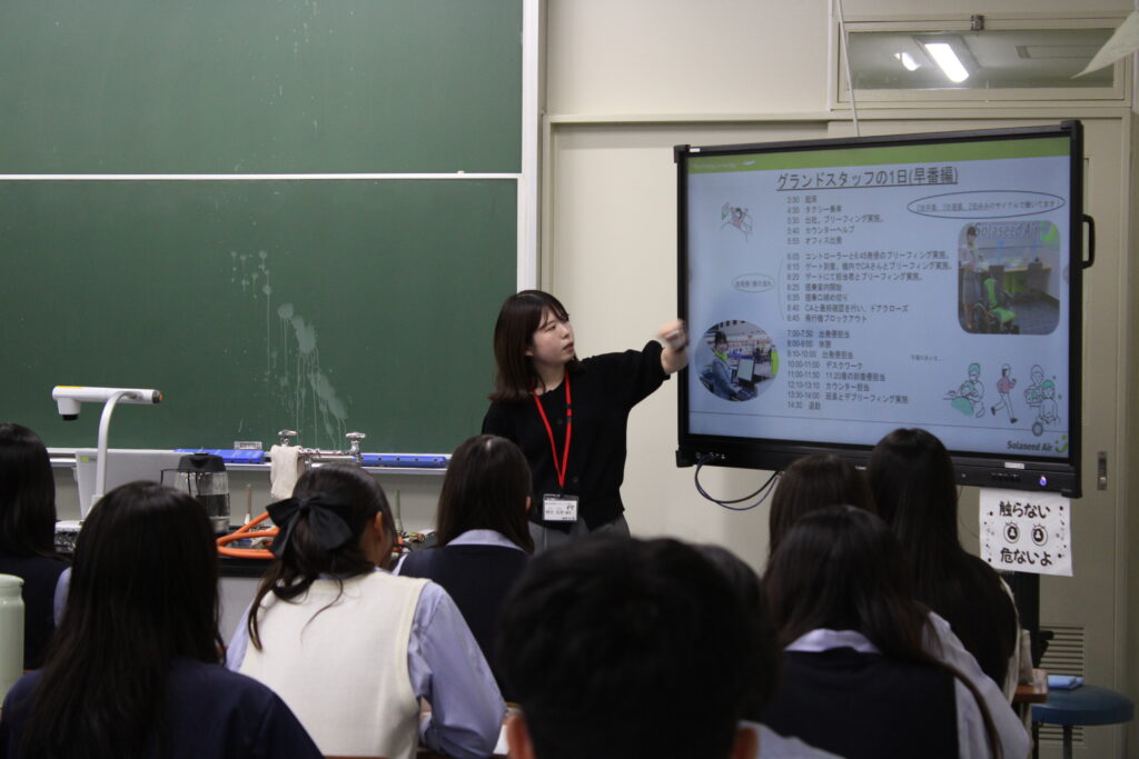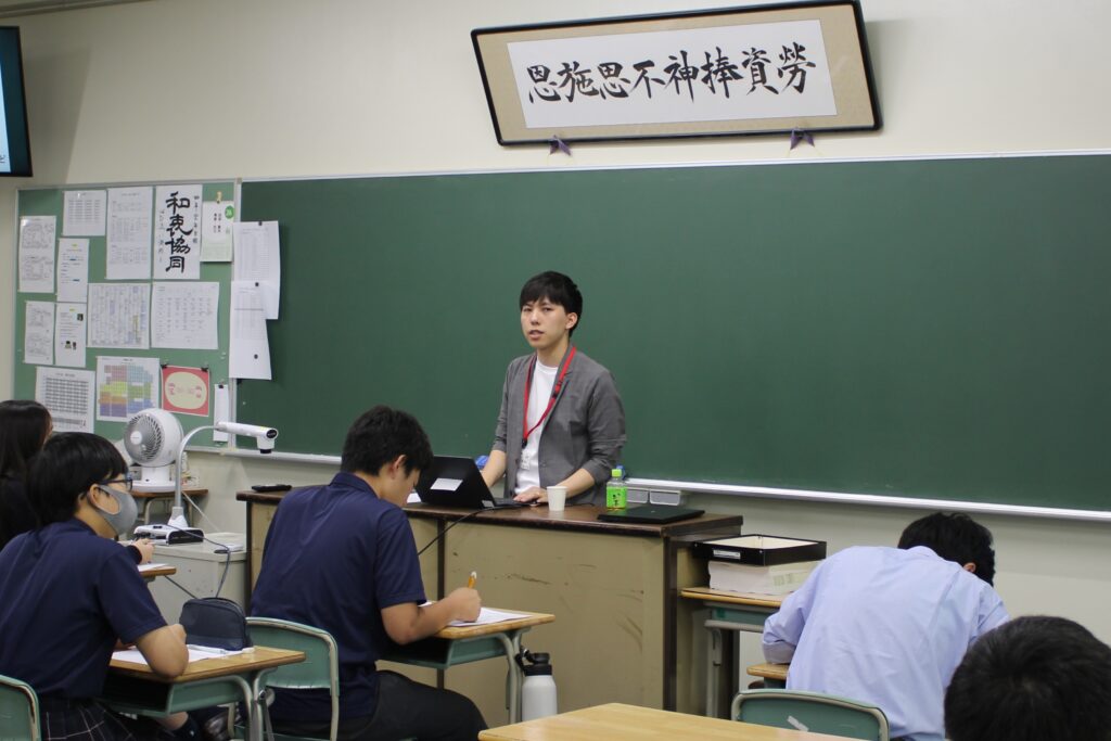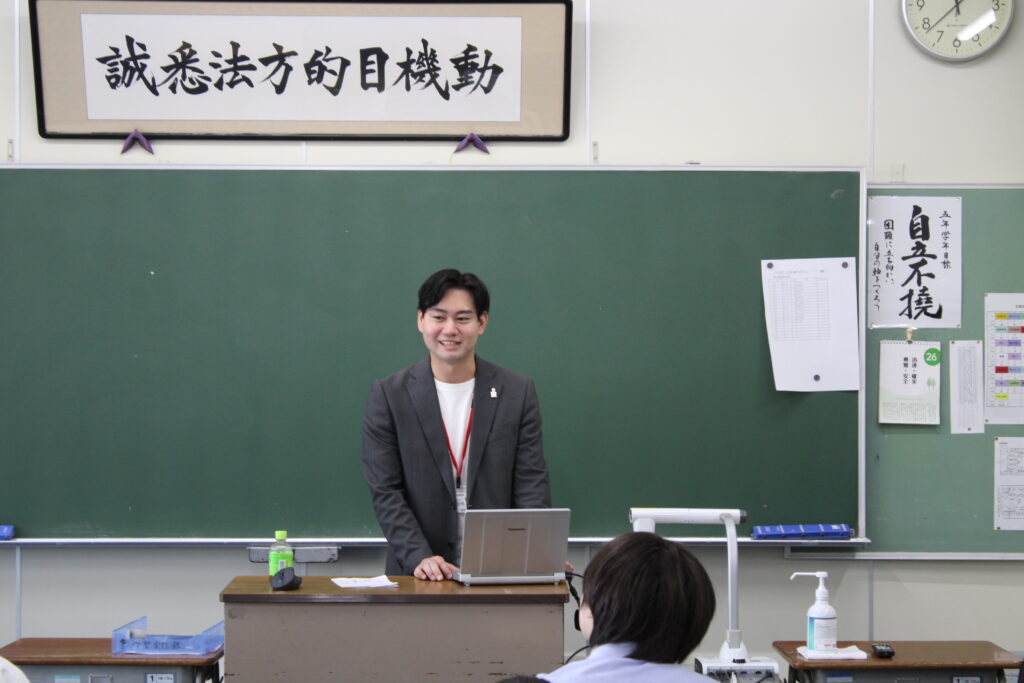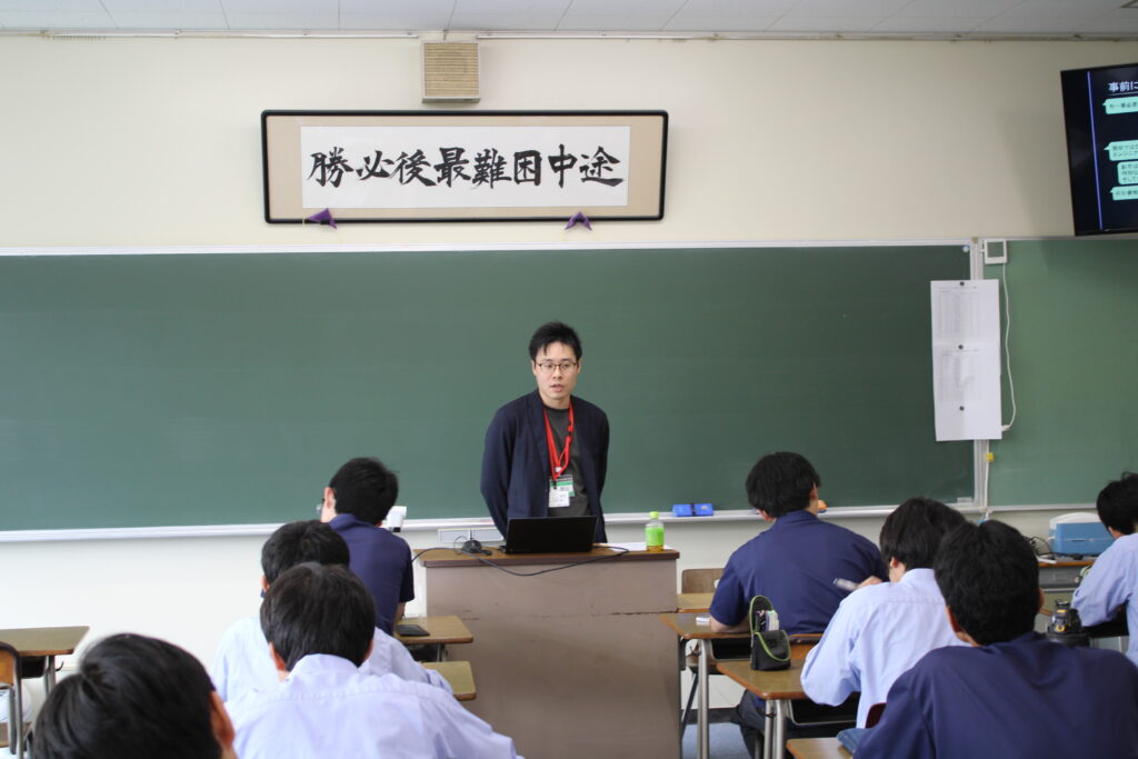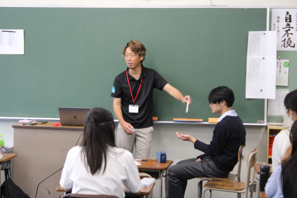 その後、生徒は自分の希望する職種に分かれて卒業生からの講演を聞きました。ふだんなかなか聞くことができない話を、卒業生の先輩から聞くことができ、生徒たちも前のめりで話を聞いていました。高校卒業後に何故その職業に就くことになったのか、職業に就くまでにどのようなことを学んだのか、日々の業務の中でのやりがいや苦労など、生徒たちは多くのことを学ぶことができました。講演終了後、個別に質問をする生徒に対しても丁寧に対応していただきました。