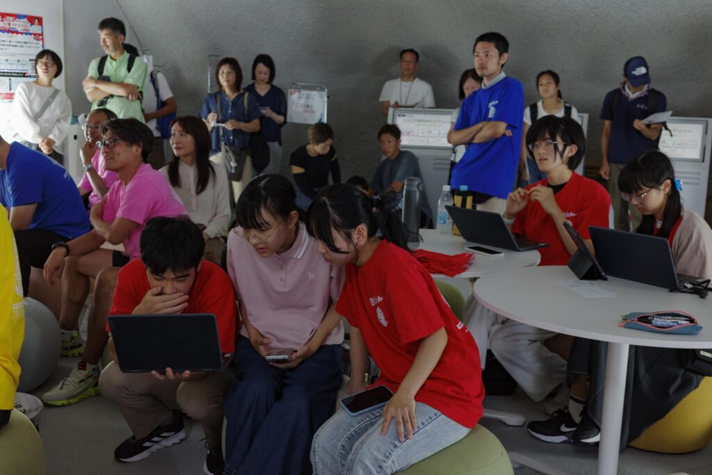 1日目の開会行事では、地区予選会の表彰式がおこなわれました。その後、各チームが事前に準備してきたアイデアをポスターセッションで共有。続いて、スクーミー(小型センサーボード)の体験を行い、翌日の実地活動に備えました。