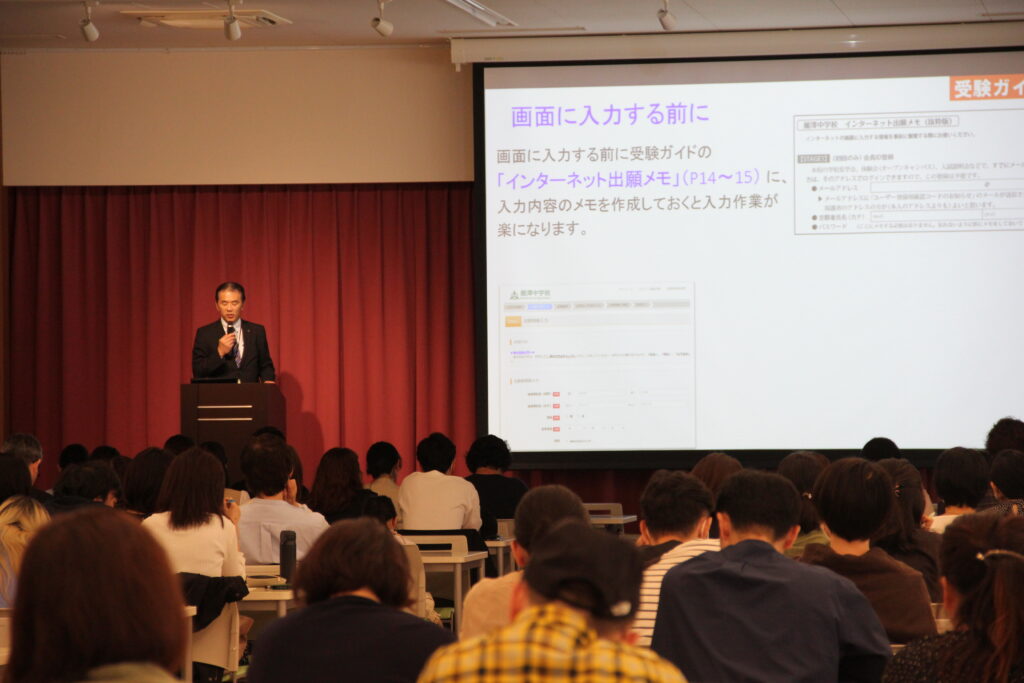 入試説明会は、これまでの学校説明会とは異なり、募集要項や出願方法のご案内、入試問題の傾向と対策など、入試に特化した内容となっています。