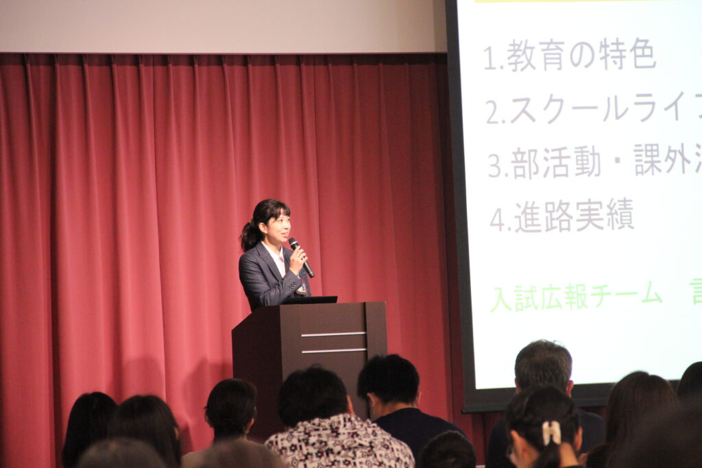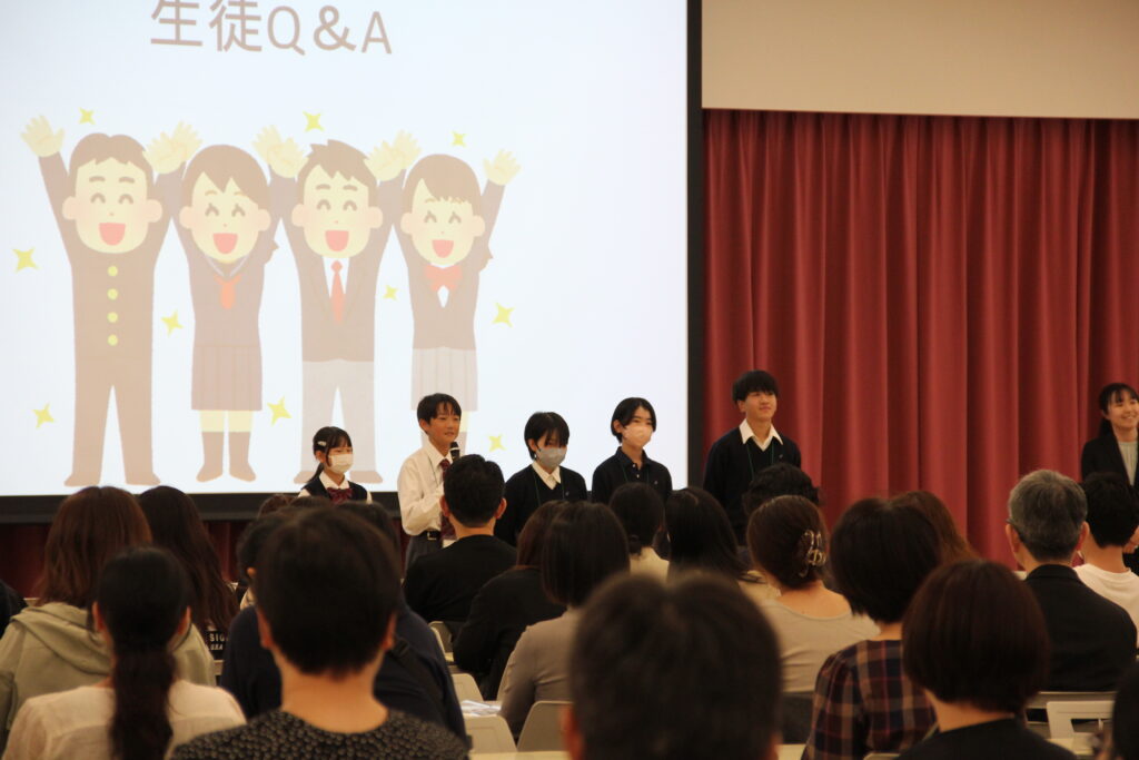 一方で、これまでの説明会と同様に、在校生によるスピーチや、お手伝いの生徒によるQ&Aコーナーも実施しました。