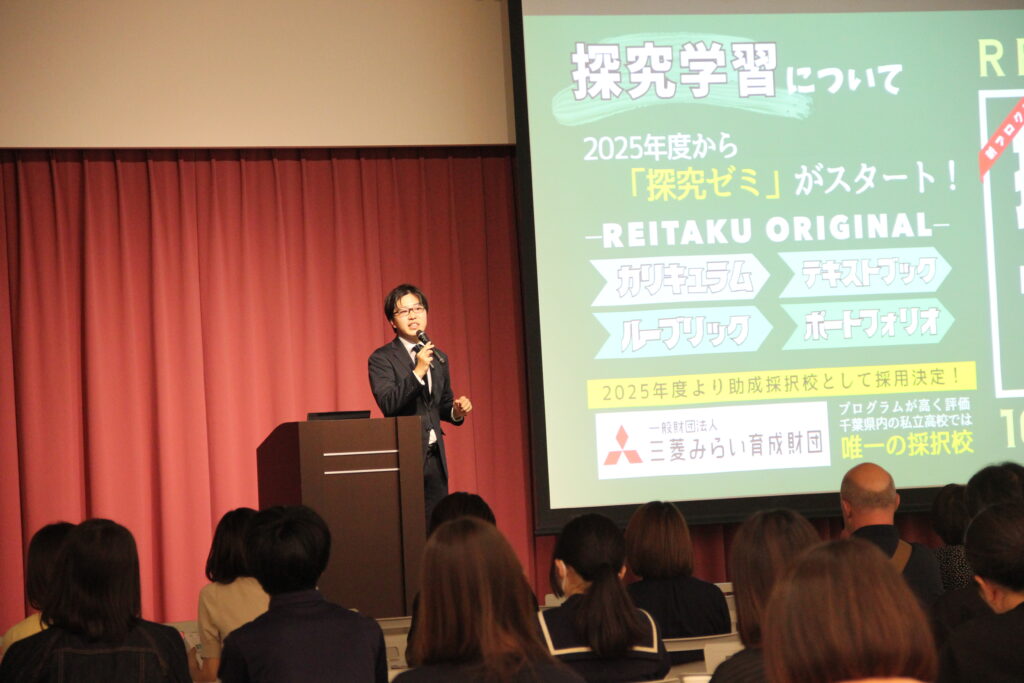 説明会は、校長挨拶の後、教頭による入試説明、入試広報生徒チームSTARおよび教員による学校紹介と続き、最後に生徒へのQ&Aコーナーというスケジュールで行われました。