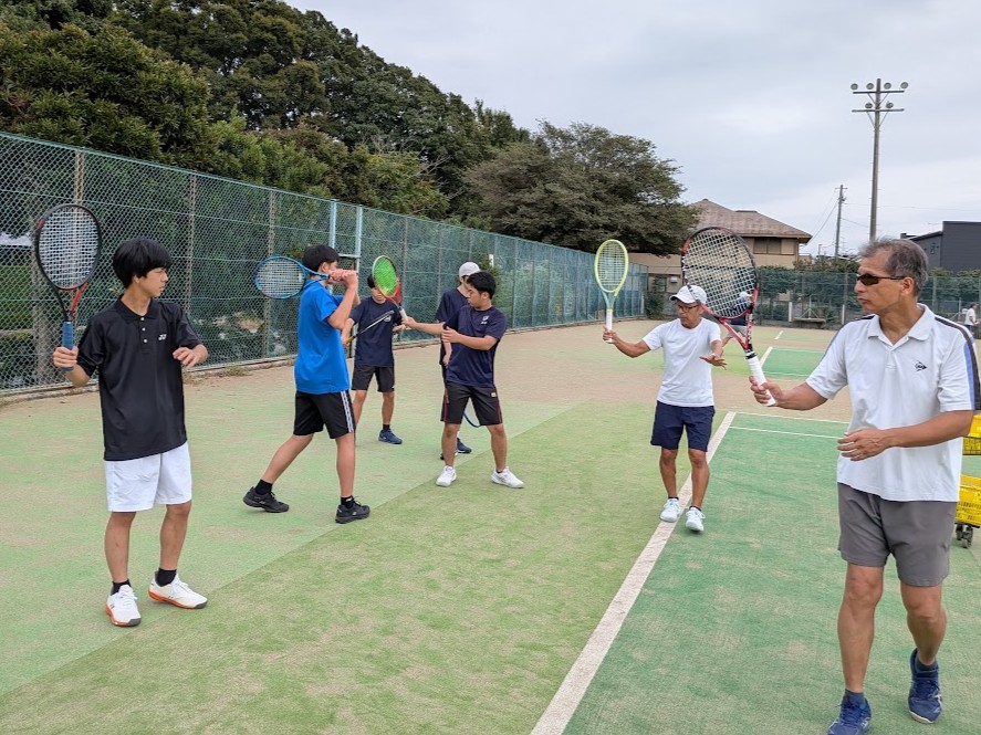 令和7年10月12日(日)から13日(月)にかけて、高校男子テニス部のOB会を行いました。当日は、10名以上のOBが集まり、現役生と試合をしてくださったり、個別レッスンをしてくださったりと、非常に充実した時間となりました。OBの中にはインターハイ経験者やテニススクールを営んでいる方もいらっしゃり、非常に丁寧でわかりやすい指導をしてくださりました。現役生はこの二日間だけでも、ボレーの打ち方などについて大きな向上を感じられたようです。また、応援されることのありがたさを感じられる二日間にもなったはずです。運営をしてくださった幹事の皆様、本当にありがとうございました。