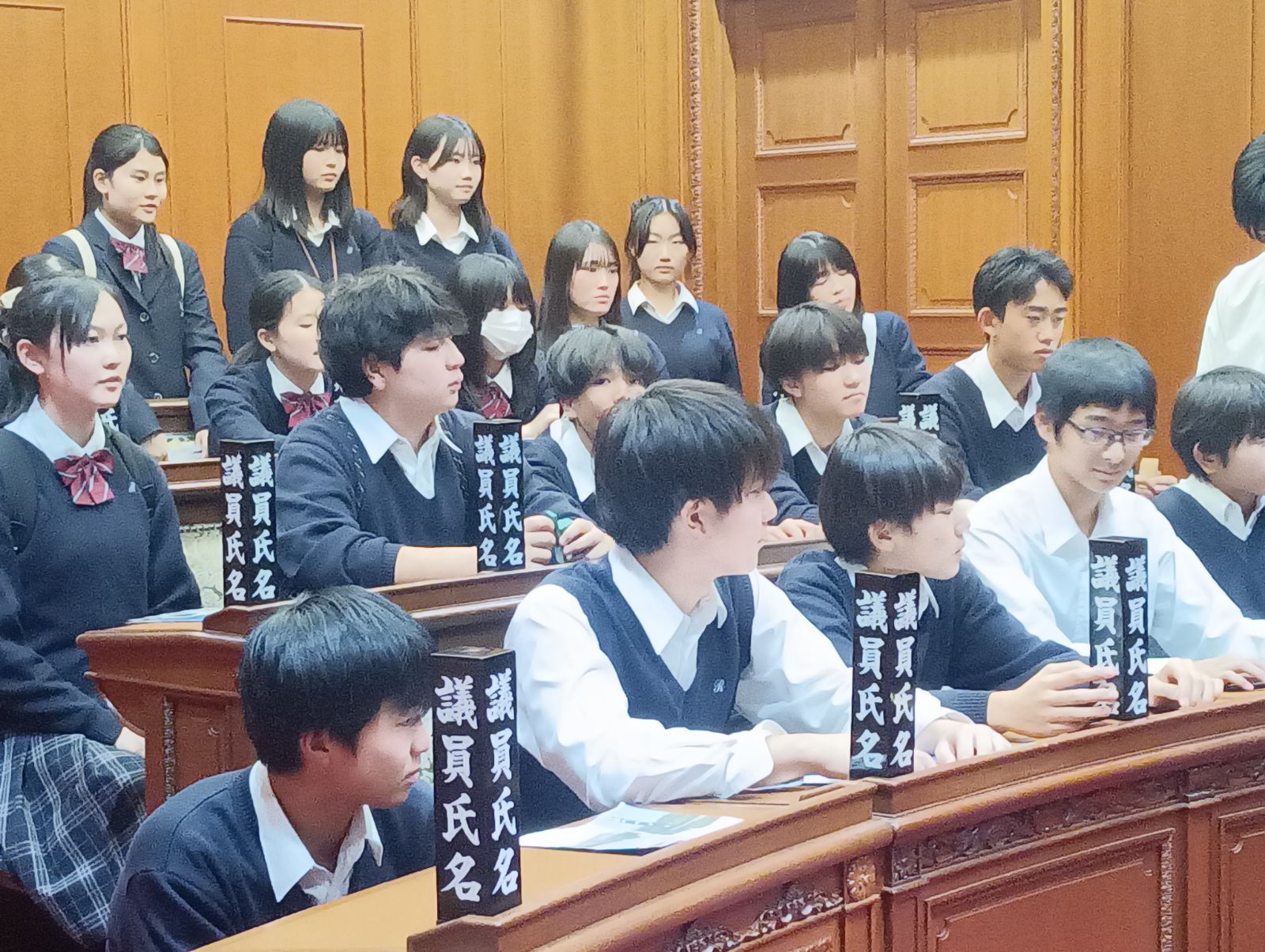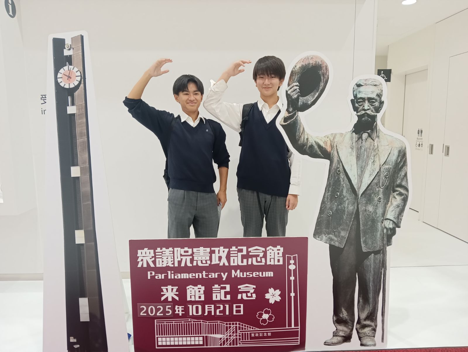 次に衆議院内を見学し、昼食は大講堂でとりました。午後は憲政記念館を見学し、特別プログラムの1日目を終えました。この日は衆参両院にて行われた首相指名投票により、高市早苗議員が第104代目の内閣総理大臣に就任した日であったため、ニュースや政治に関心を持つきっかけになった生徒が多かったように思います。