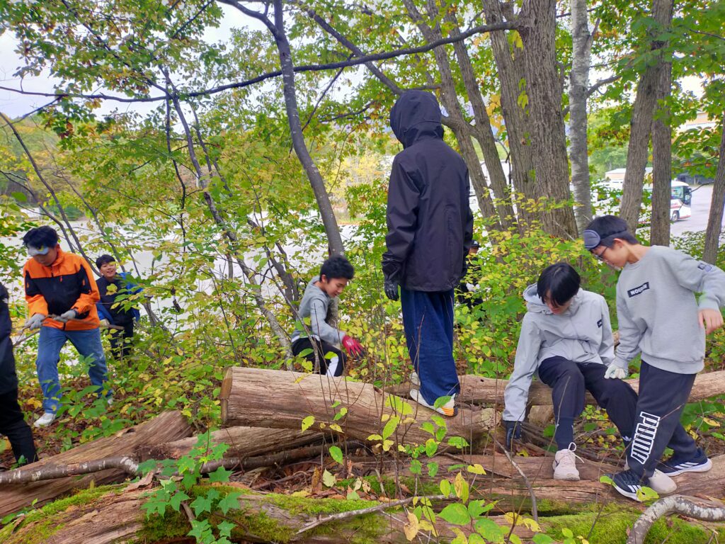 クマの出没で話題となっていた地域であったため、森の中の活動は控えたり、生徒一人一人に緊急時の笛を持たせたりなど、安全に配慮しながら学びを深めてきました。