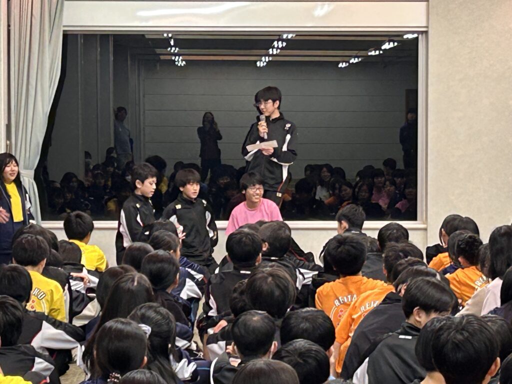 ピンポン玉リレーや〇×ゲーム、伝言ゲーム行いました。全クラスの生徒が協力して取り組んでおり、クラスの絆が深まりました。