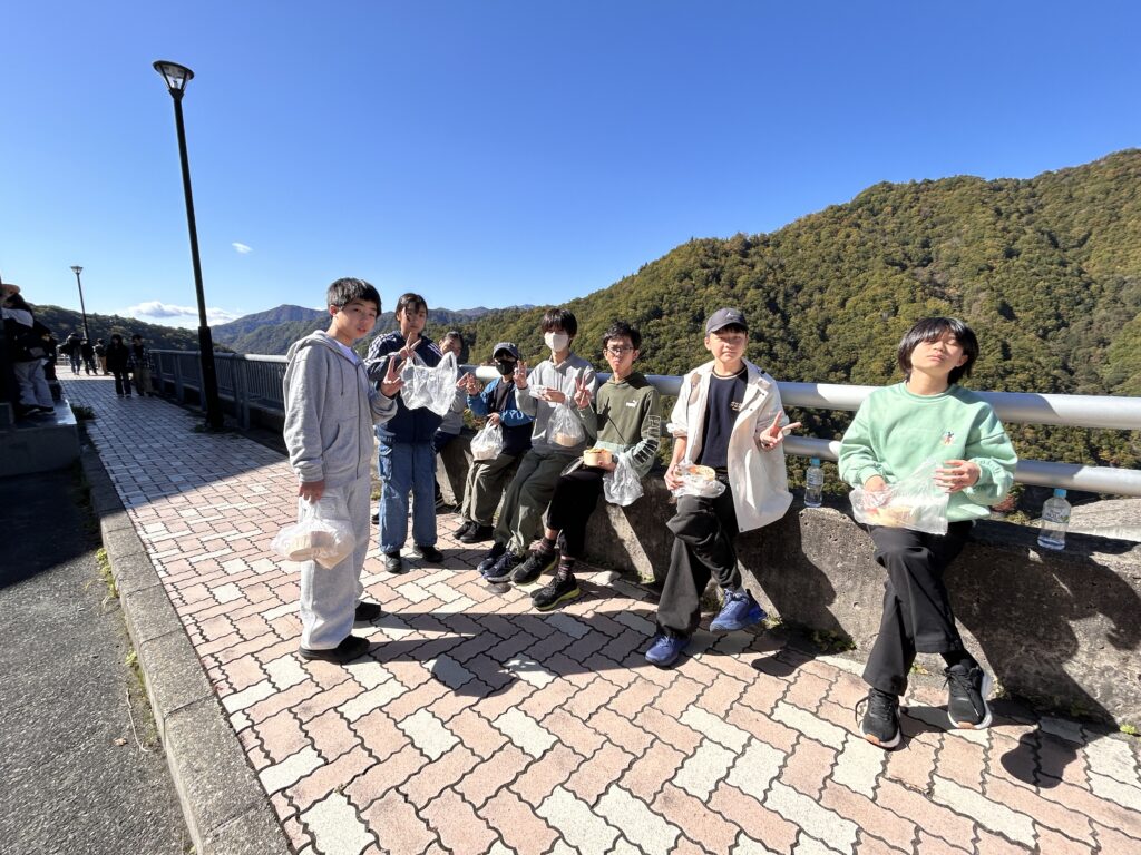 その後ホテルを出発し、「奈良俣ダム」を訪れました。壮大なダムを見て感動した後、お弁当を食べました。
