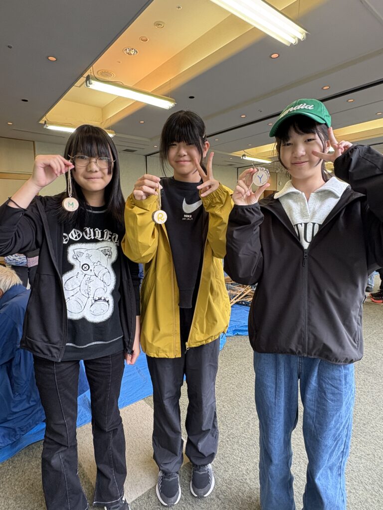 クラフト体験では木材や松ぼっくりなどの自然のものを使って工作をしました。