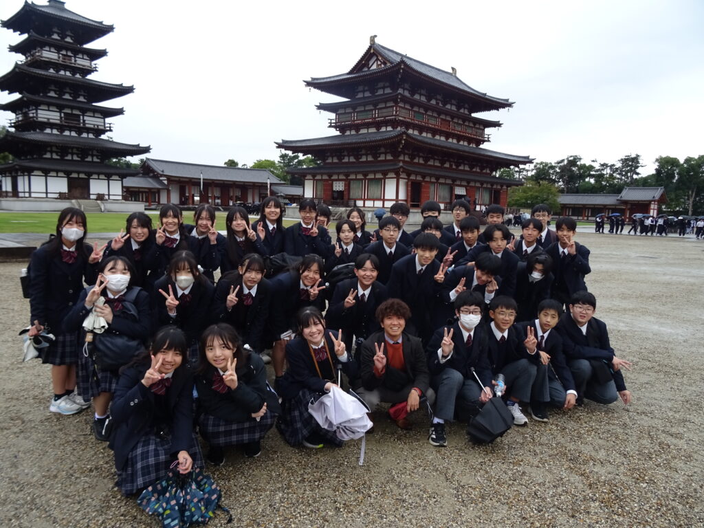 10/21〜10/24に、中学2年生は3泊4日の関西研修へ行ってきました。この研修は本校の「自分(ゆめ)プロジェクト」の一環です。2年生のテーマは「日本文化研究」であり、自らのバックボーンとしての歴史や文化への深い教養を身につけることを目指しています。今年度が始まってから今までに、日本文化研究として神話の学習、鹿島神宮の訪問(香取神宮は大雨のため訪問はできませんでした)、神技である相撲の観戦を行ってきました。そして今回の関西研修では、今までの学習の集大成として日本文化の根幹を担う神社仏閣等を訪問しました。