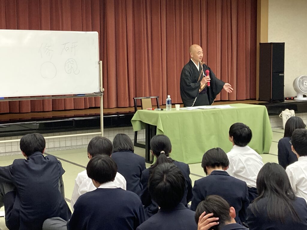 2日目は京都御所と護王神社を訪問しました。京都御所ではガイドさんの話を聞きながら、紫宸殿(ししんでん)、清涼殿(せいりょうでん)などを見学しました。また蛤御門(はまぐりごもん)の弾傷の跡を見て、生徒は驚きの声を上げていました。護王神社では神主さんのお話を聞き、その後正式参拝を行いました。正式参拝の厳かな雰囲気で、生徒全員が気を引き締めることができたようです。その後はバスで奈良へ移動し、法隆寺と薬師寺を見学しました。五重塔や東塔など、写真で見たことがある歴史的建造物を実際に見ると圧巻の迫力だったようです。この日の夜は、薬師寺の僧侶であり、麗澤高校の卒業生でもある小林澤應先生に法話をして頂きました。
