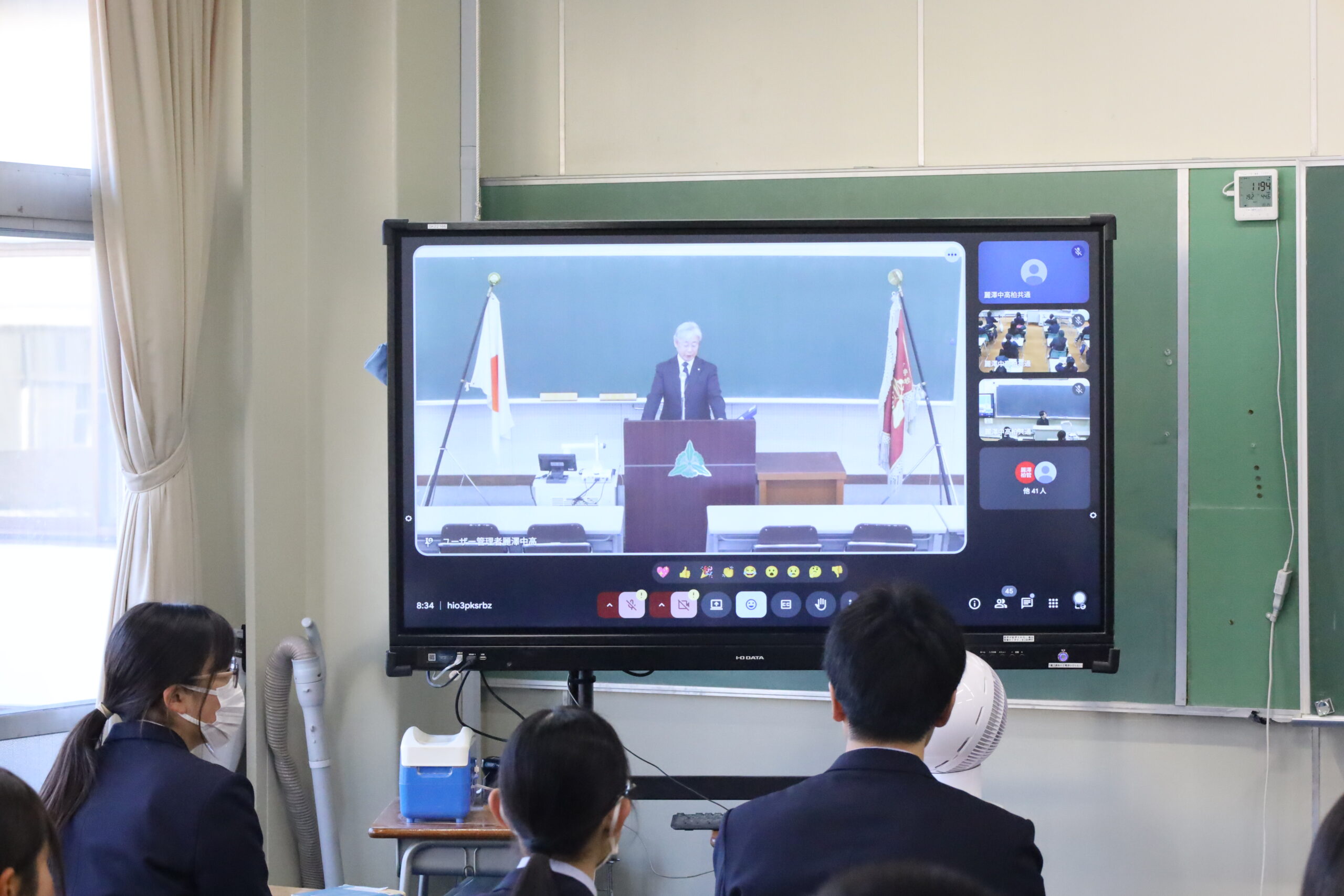 12月18日(木)に、令和7年度第2学期終業式を行いました。生徒は各ホームルーム教室で中継の視聴にて参加しました。