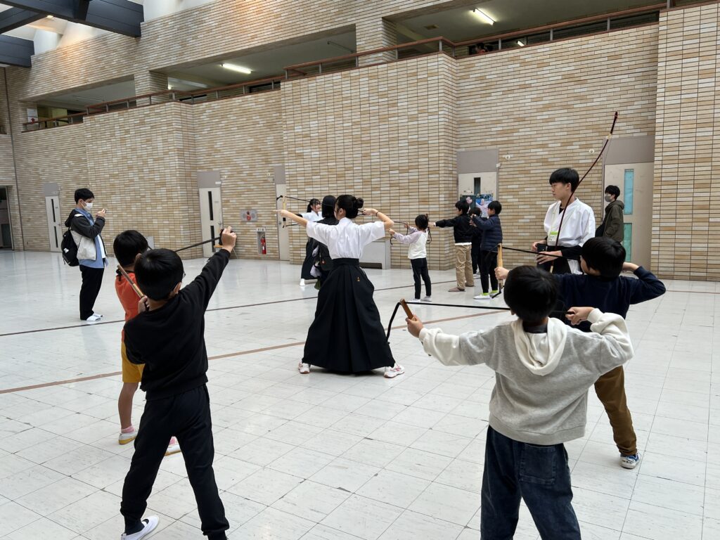 会場には小学生や保護者の皆さまが多く立ち寄ってくださり、実際に弓を構える体験では、緊張しながらも笑顔がこぼれる姿が印象的でした。