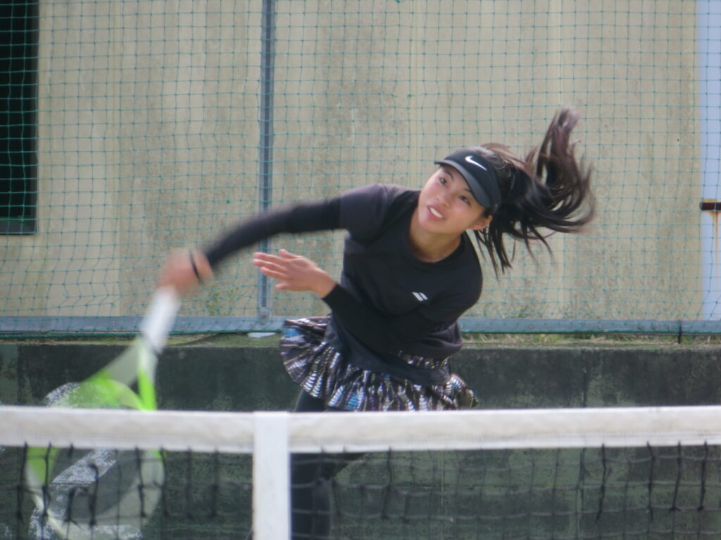 今大会はシングルス1に鈴木、シングルス2に高瀬、シングルス3に若林、ダブルス1に中澤・山崎組、ダブルス2に富田・井上組のオーダーで臨み、初日の試合をしっかりと勝ち上がりベスト8に進出しました。