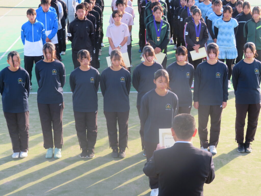 関東選抜大会の千葉県代表を決める新人テニス大会(シングルス3本、ダブルス2本の計5本で競う)が、令和7年11月11日(火)・12日(水)に白子町共同コートにて開催されました。本校は惜しくも関東大会への出場は叶いませんでしたが、見事ベスト4入りを果たしました。