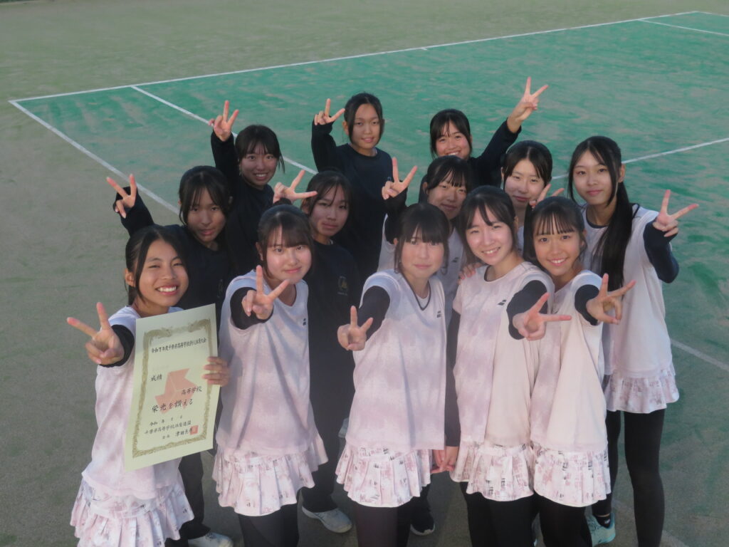 また、10月10日・11日に行われた個人戦では、シングルスで鈴木がベスト16入りを果たし、ダブルスでも鈴木・高瀬組がベスト8となり、来年の県大会のシード権を獲得いたしました。人数が少ない中、声をからして選手にエールを送り続けた仲間との強い絆と、負けた試合から課題を見つけ地道に練習を重ねた部員一人一人の努力が実を結び、チーム全体でつかんだ素あ晴らしい結果だと思います。
