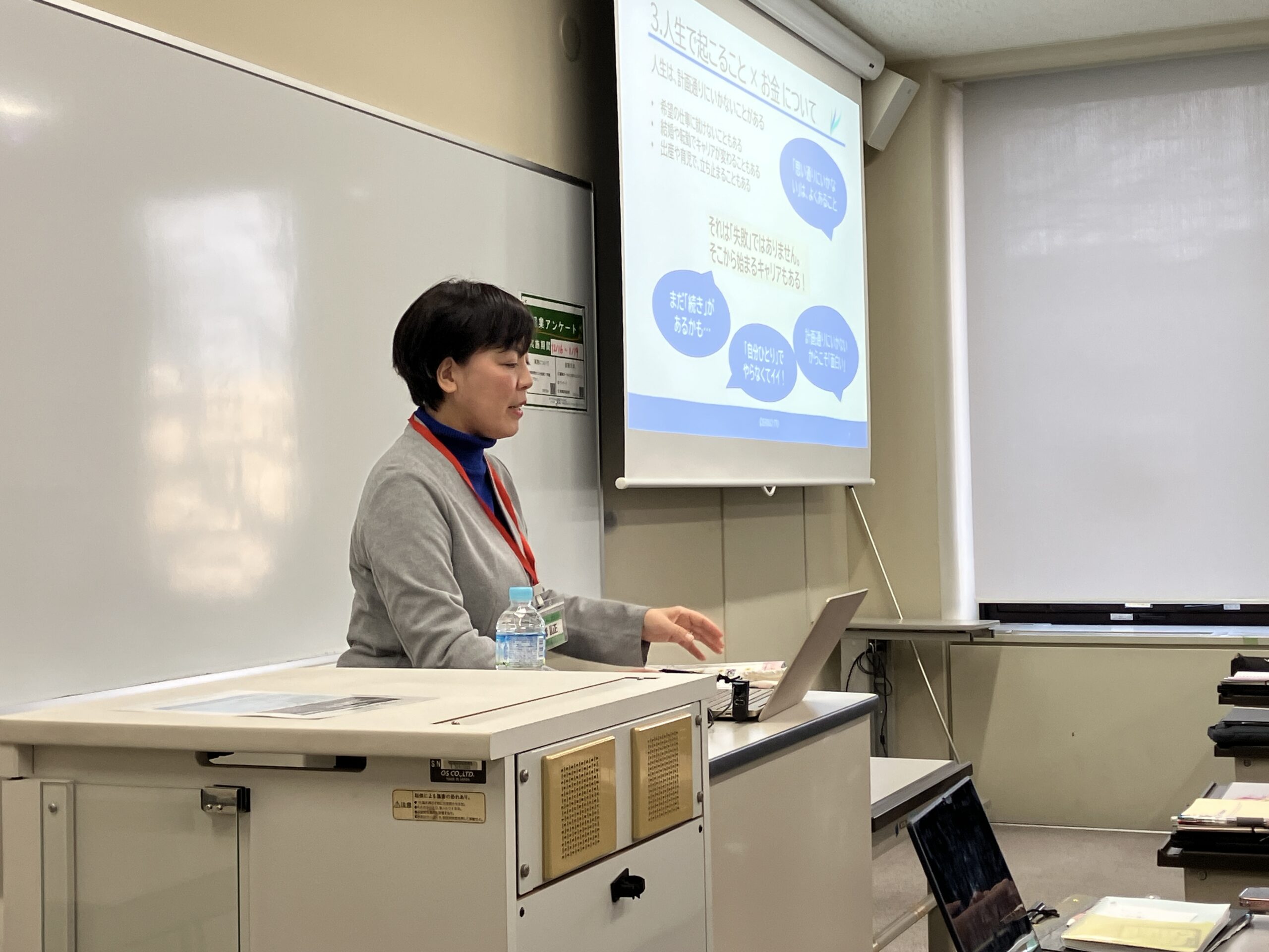 講師は本校の卒業生で寮生でもあった麗澤高校51期の伊藤江里子さんです。伊藤さんは複数の金融機関に従事し多くの家計相談に携わり、現在、FPとしてセミナー講師・個人相談・執筆活動をなさっています。