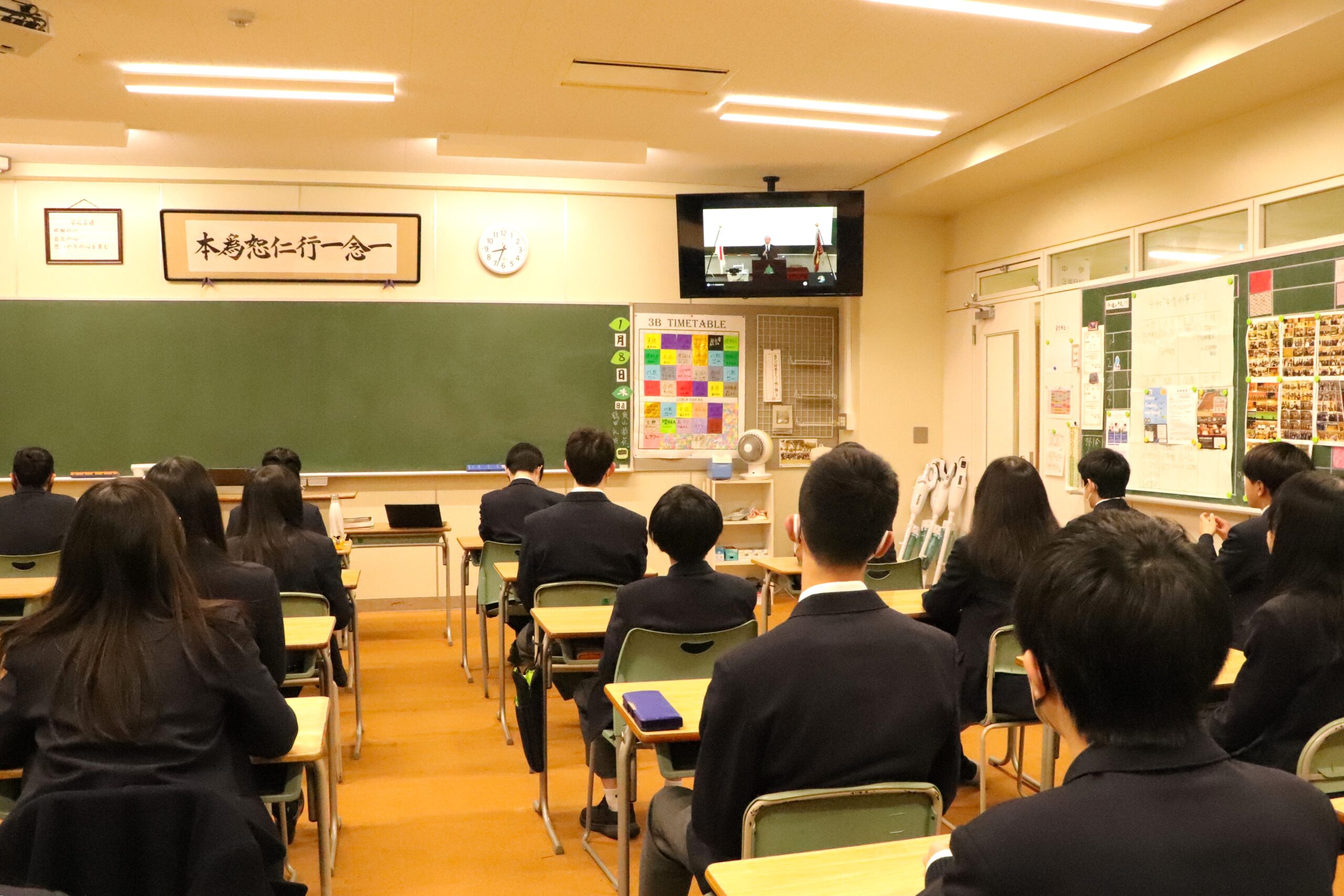 1月8日(木)、3学期始業式を流行しているインフルエンザなどの感染症のリスクを避けるため、各教室からオンラインで実施しました。