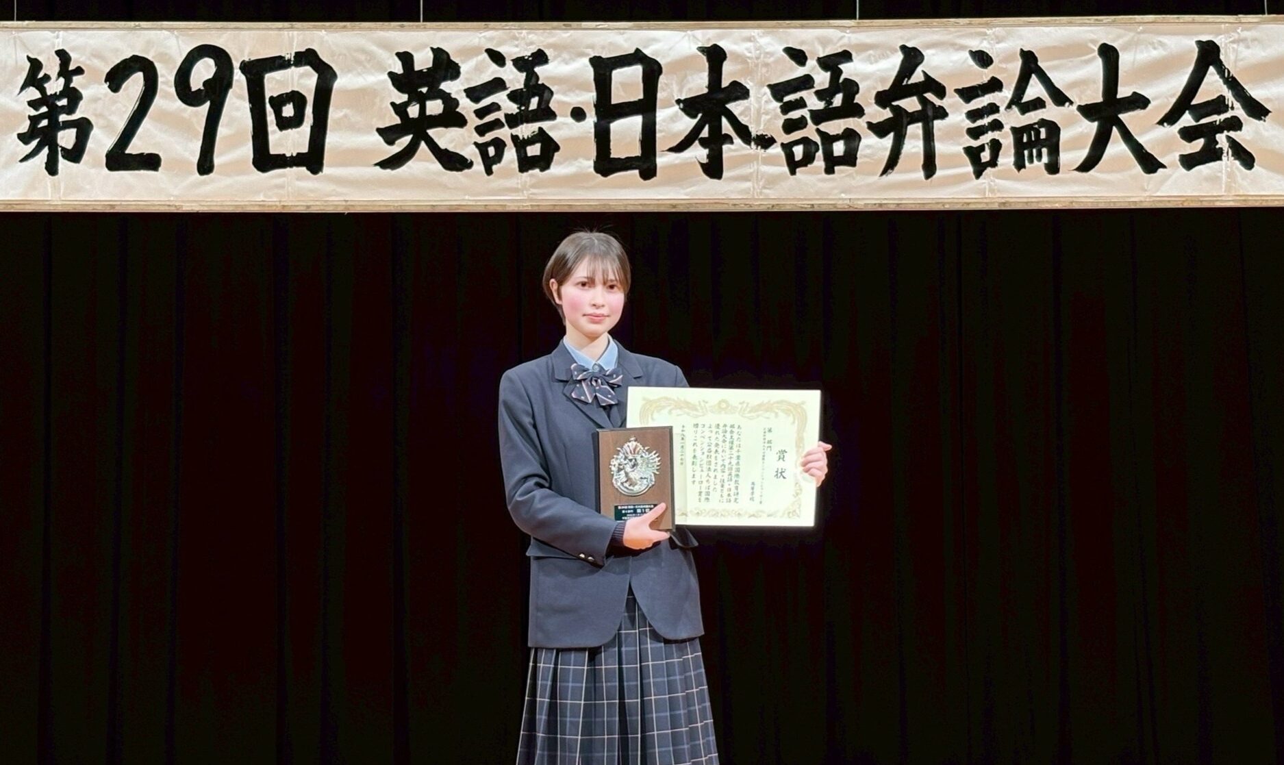 2026年1月27日、さわやかちば県民プラザにて開催された第29回英語・日本語弁論大会【プレゼンテーション部門】 において、本校のSDGs研究会に所属する本校生徒が見事「優勝」を収めました。