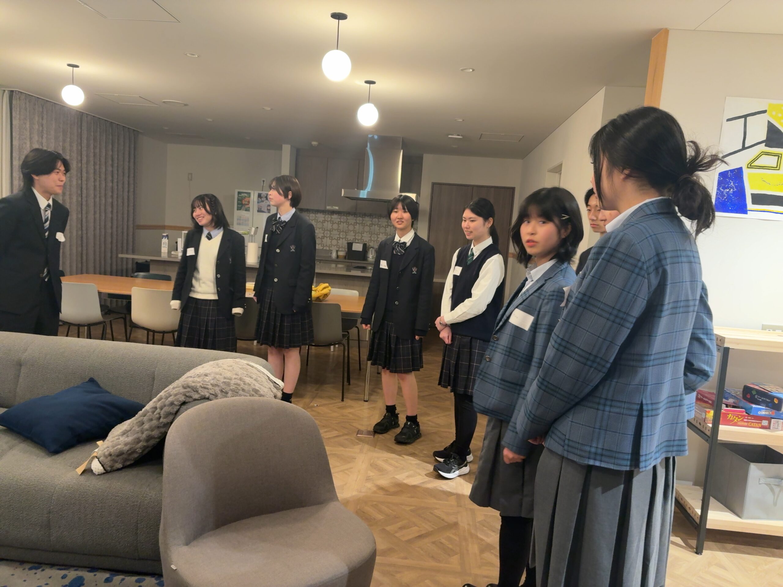 ラグビー・スクール・ジャパンの生徒の案内による施設見学では、運動場や特別教室に加え、高校生のみが利用できる休憩室や寮の談話室など、貴重な施設を案内していただきました。