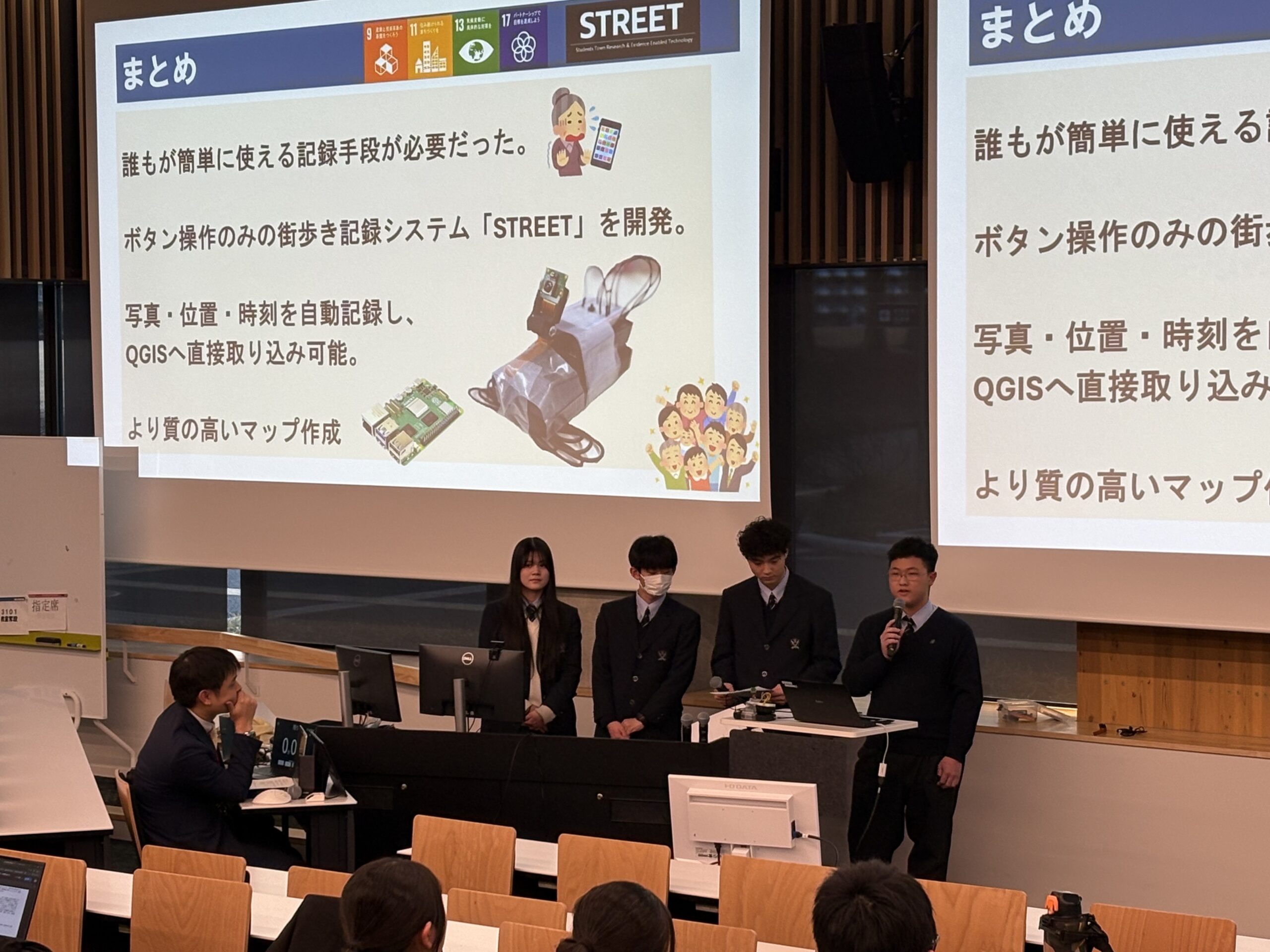 データサイエンスAIゼミ所属の高校1年生チームが取り組んだ「Raspberry Piを用いた街歩き記録システム『STREET』の開発」が、多くの注目を集めました。