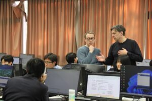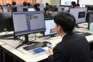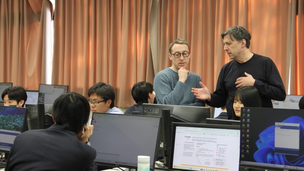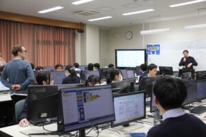 本校はDXハイスクール採択校として、テクノロジーを活用し社会課題の解決に挑戦できるイノベーション人材の育成を推進しています。その取り組みの一環として、2月17日・18日の2日間にわたり、高校2年「情報Ⅱ」の授業において、外国人博士による特別授業を実施しました。授業は全編英語で行われ、実践的な学びを体験しました。なお、本授業は、文部科学省DXハイスクール事業の趣旨に基づき実施しました。