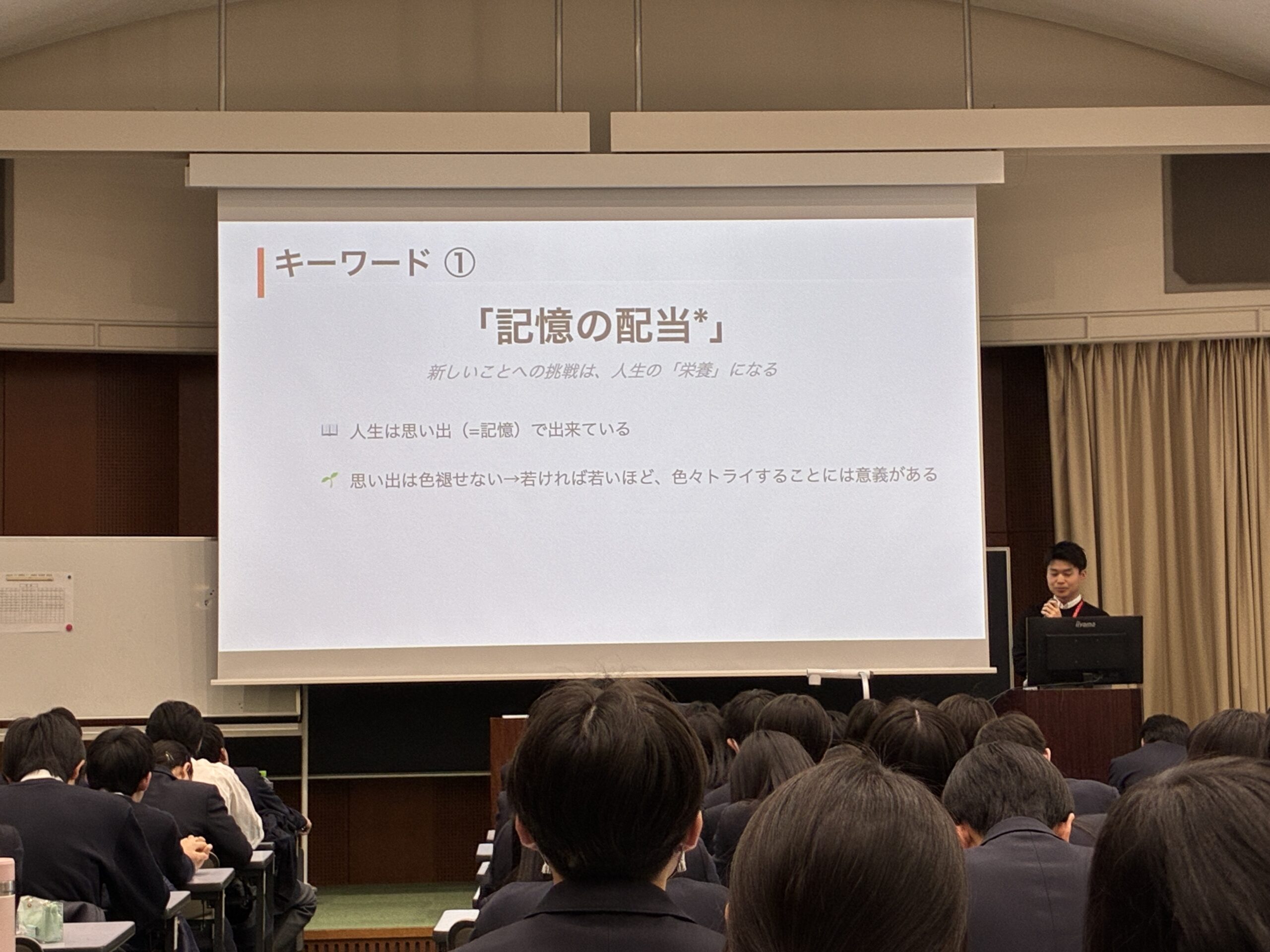 今日の講話を聴いて、今のうちにしかできないことが多いから、不安があってもやりとげることが大切なことだと思いました。