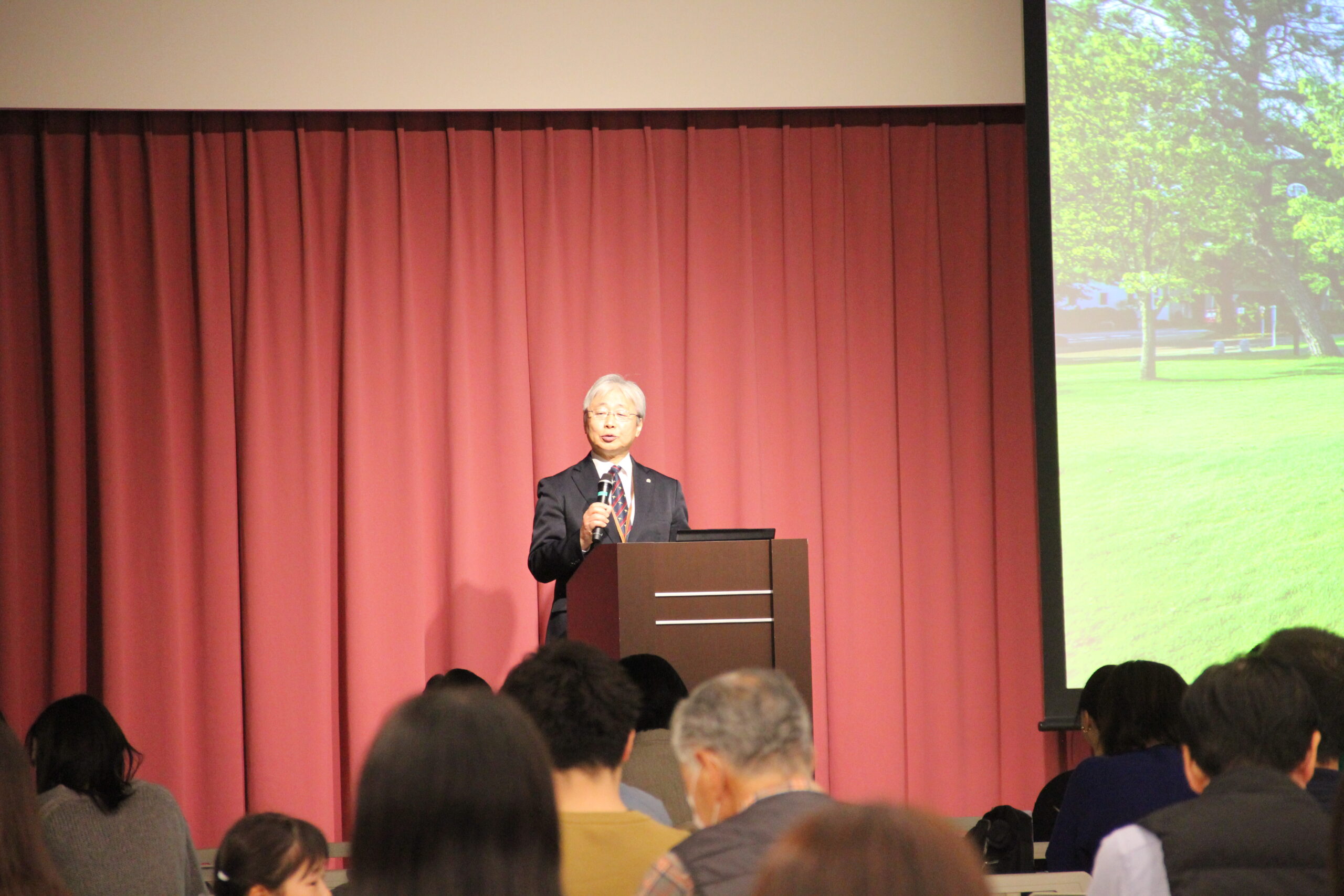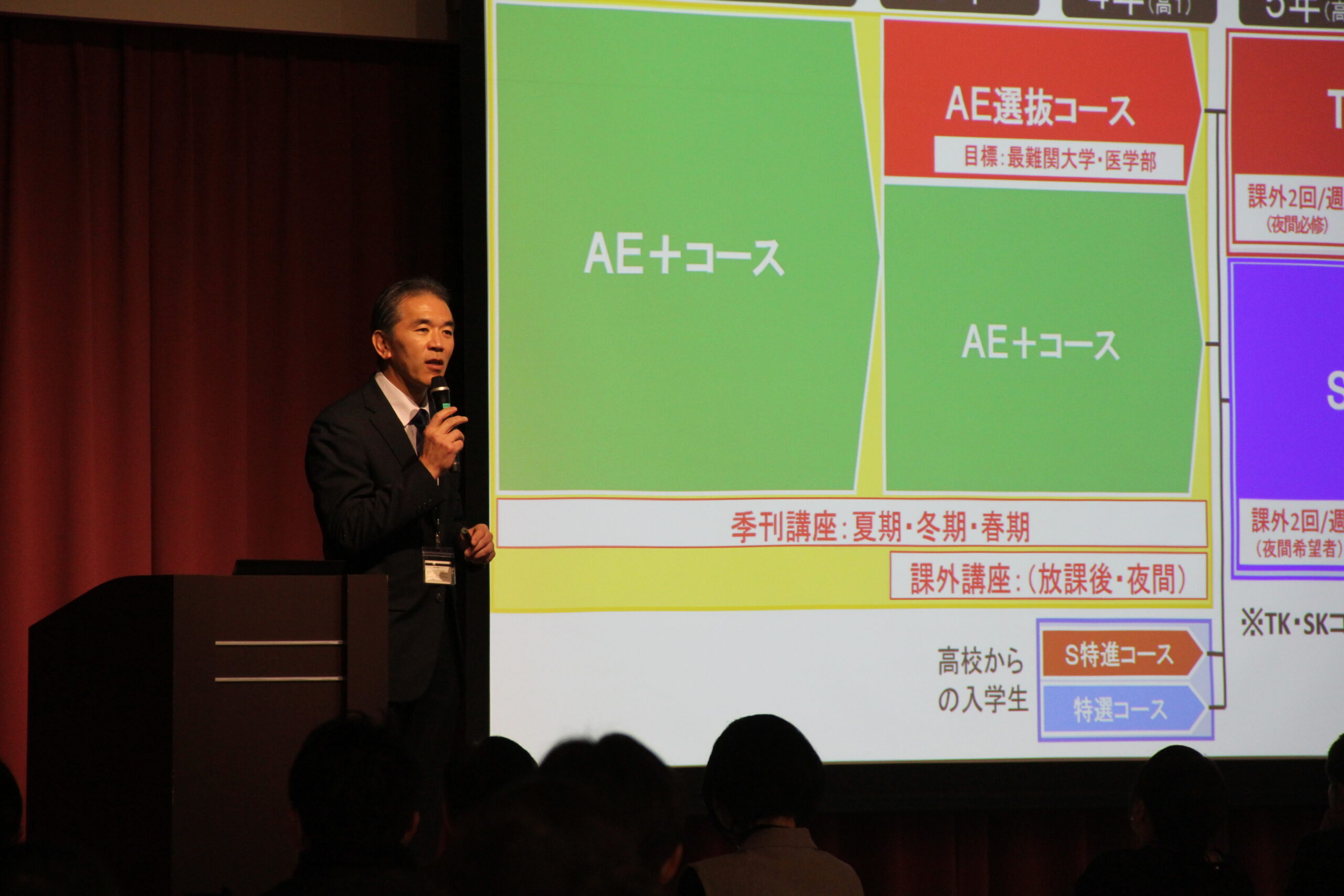 体験授業の間、保護者の皆様に向けて、食堂けやきにて学校説明会を開催しました。