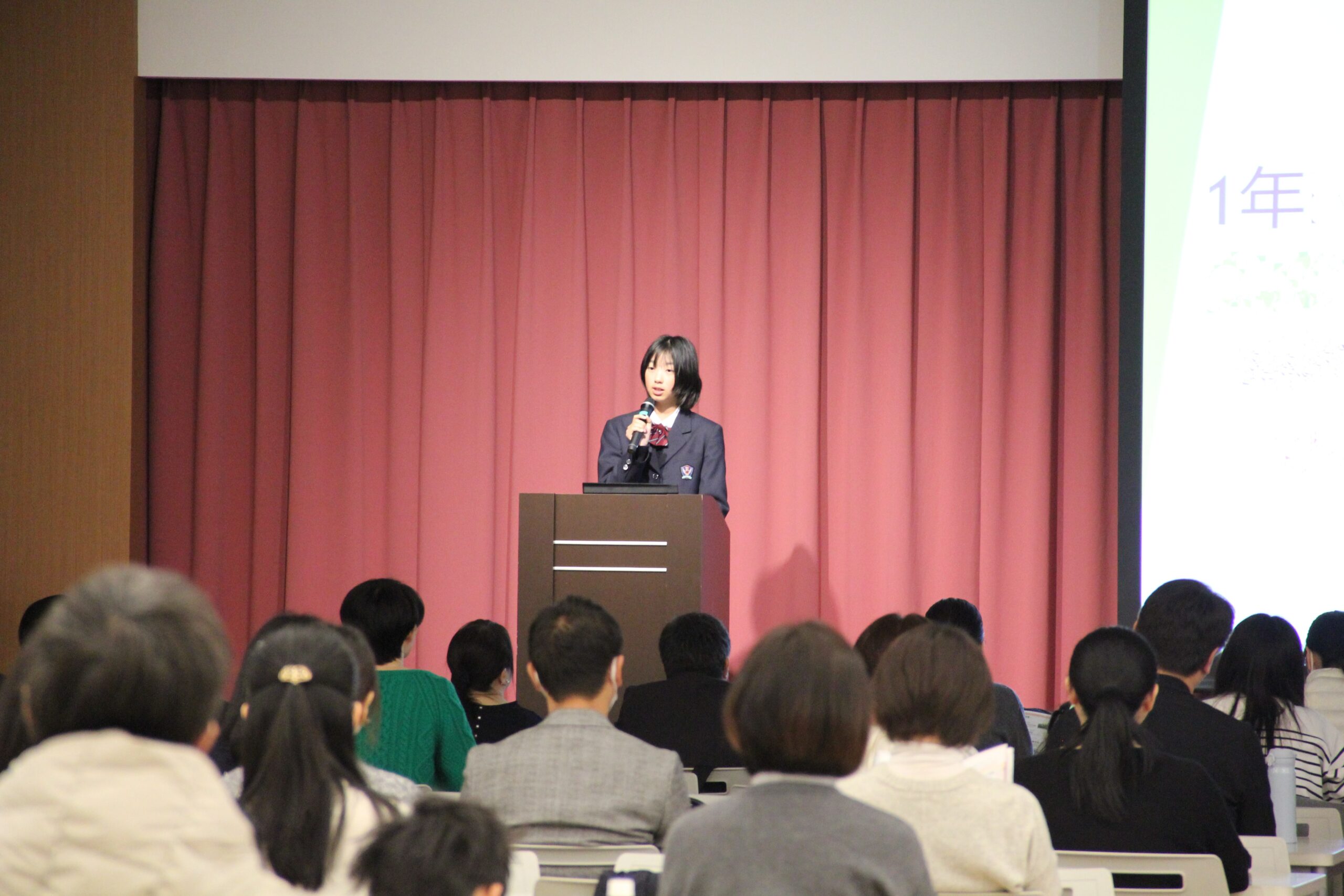 校長挨拶、教頭と担当教員による学校説明のほか、代表生徒によるスピーチや有志の中学生が「Q&A」と題して保護者からのご質問にお答えする企画を実施しました。