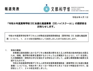 【速報】令和8年度高等学校 DX 加速化推進事業(DX ハイスクール)の採択校に認定されました
