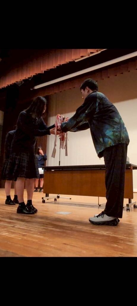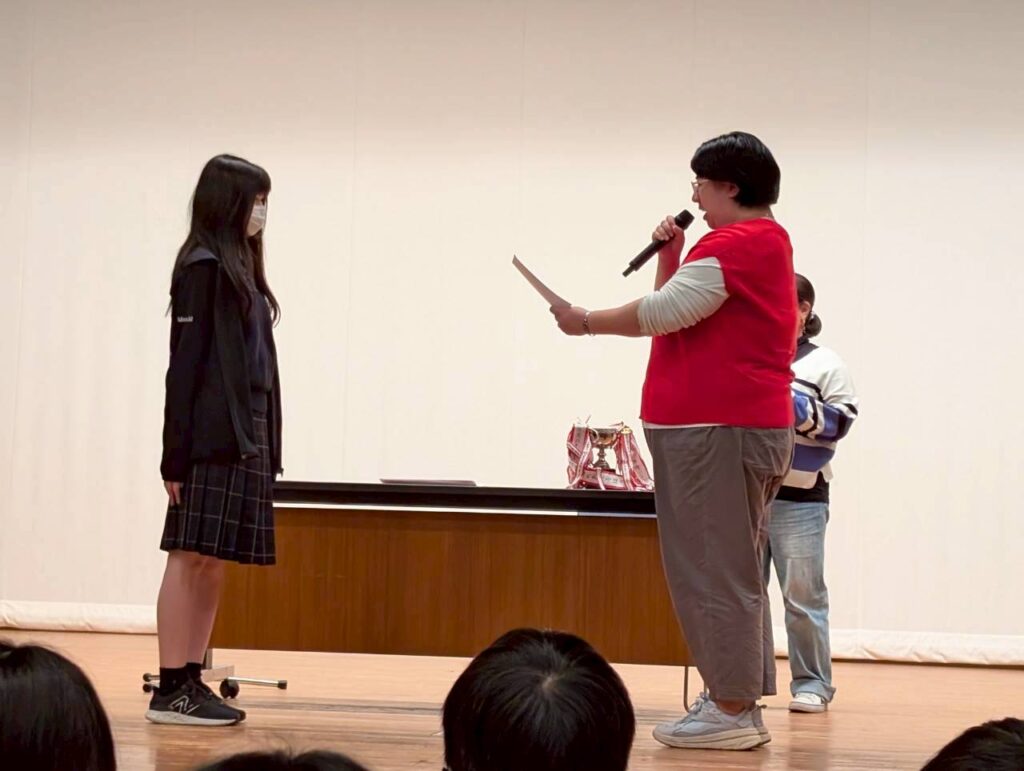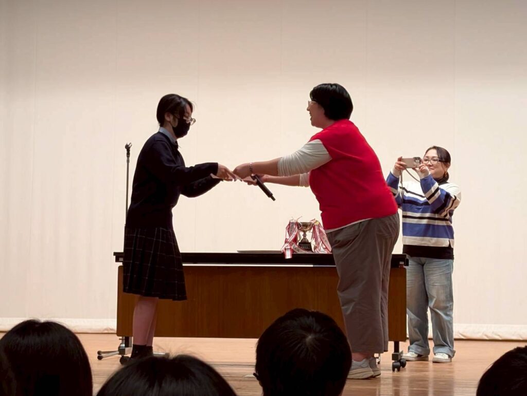 私は秋大会に出場するのは初めてでしたが、県大会という大きな舞台に出場するということを目標に今までたくさん頑張って来たので、このメンバーで県大会に出ることが決まってとても嬉しかったです!!私は医者の役で出演したのですが、秋大会からの役ということもあり、喋り方など初めの頃は上手く出来ませんでした。また声量のコントロールも難しかったです。しかし部活の中で一致団結して頑張ろうという雰囲気で皆がそれぞれ色んな所で頑張っているのを目にし、目標に向かって頑張っていけました。