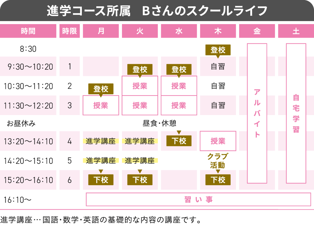 私は全日制高校に通っていましたが、通信制での学び方が自分に合っていると考えて、麗澤高校に転入しました。現在は特別進学コースに所属し、日々の受験勉強を頑張っています。特別進学コースの授業は大学受験を意識した内容なので、緊張感を持って授業に臨んでいます。
