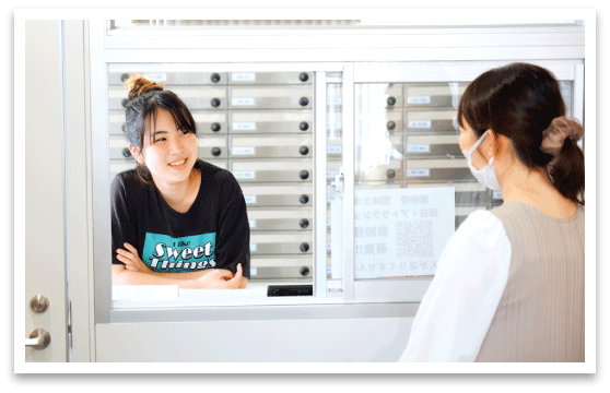 先生に質問したり、食事を取ったり、友人と過ごしたり、様々な用途で利用できます。